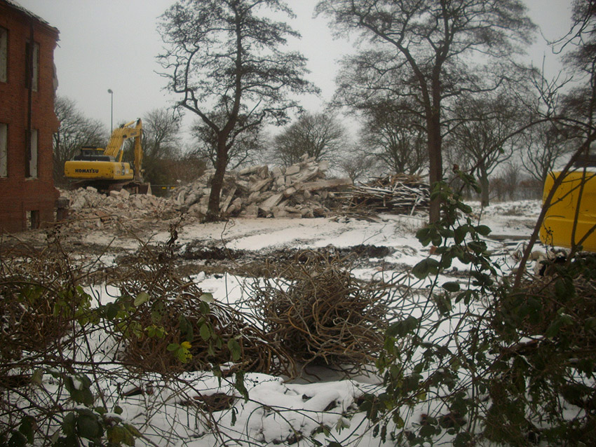 Abriss des letzten noch vorhandenen Hauptgebäudes westlich des Biosphere-Instituts fast vollendet / ursprüngliches westlichstes Hauptgebäude ist entfernt / 06.01.10 / 08.01.10