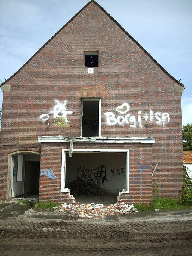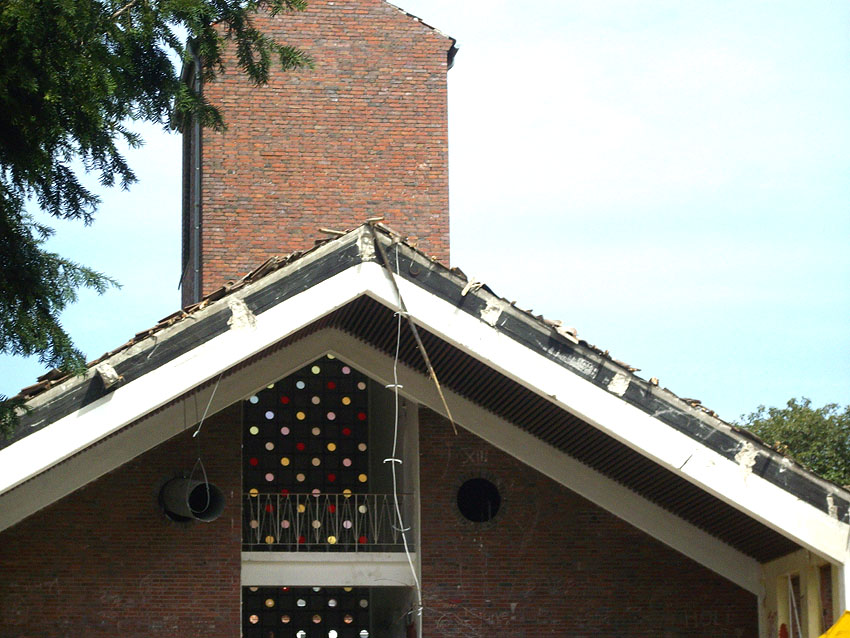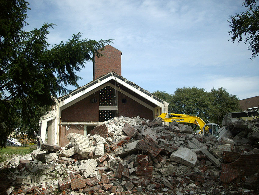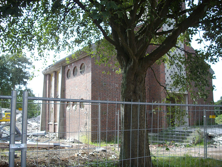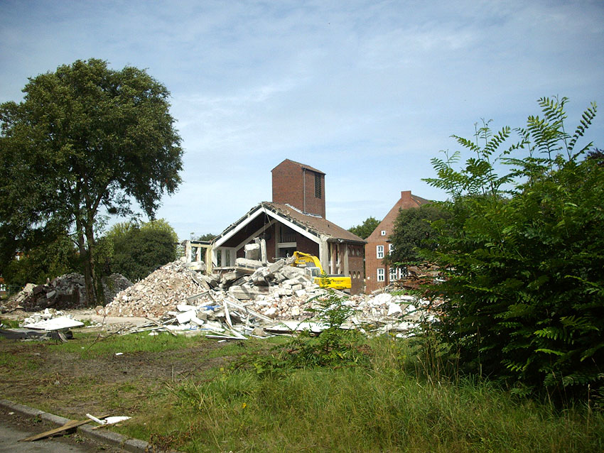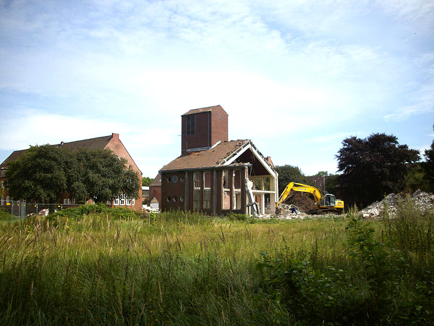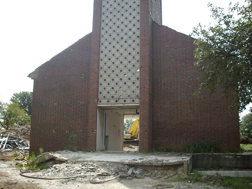 Der Ostbereich am 29. Juli 2009. Der Abriss ist in vollem Gange. Die ehemalige Kirche steht nur noch zur Hälfte...
