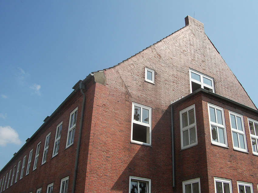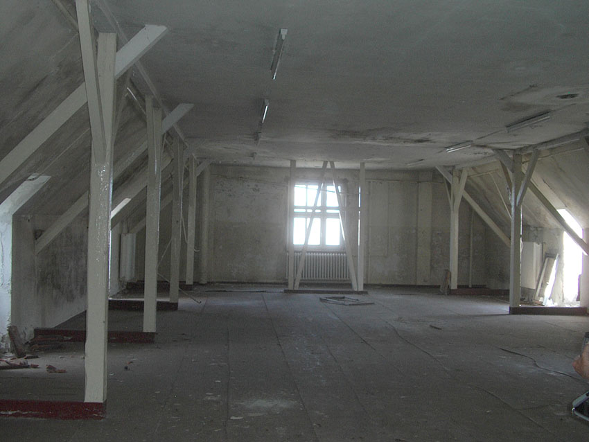 Anmerkung: Dieses Gebäude war ein weiteres, sechstes und damit westlichstes großes Hauptgebäude der Banter Kaserne. Die vertikalen Maße und die des südlichen Vorbaues entsprechen denen der anderen fünf großen Gebäude samt deren Südvorbauten. Das Bauwerk fiel im Krieg großteilig den Bomben zum Opfer. Auf Luftbildern von 1944 sowie 1945 ist zu erkennen, dass das Gebäude bis auf die Südkante nicht mehr die Höhe der anderen fünf Bauten besaß und in diesem Bereich eventuell Wiederaufbautätigkeit oder Umbautätigkeit vorhanden gewesen ist, oder zumindest vorgesehen war. Definitiv wurde das Erdgeschoss nach dem Krieg verändert, eventuell sogar fast gänzlich neu auf die im Krieg zudem in einigen Bereichen umgestaltete Kellerebene gesetzt.
