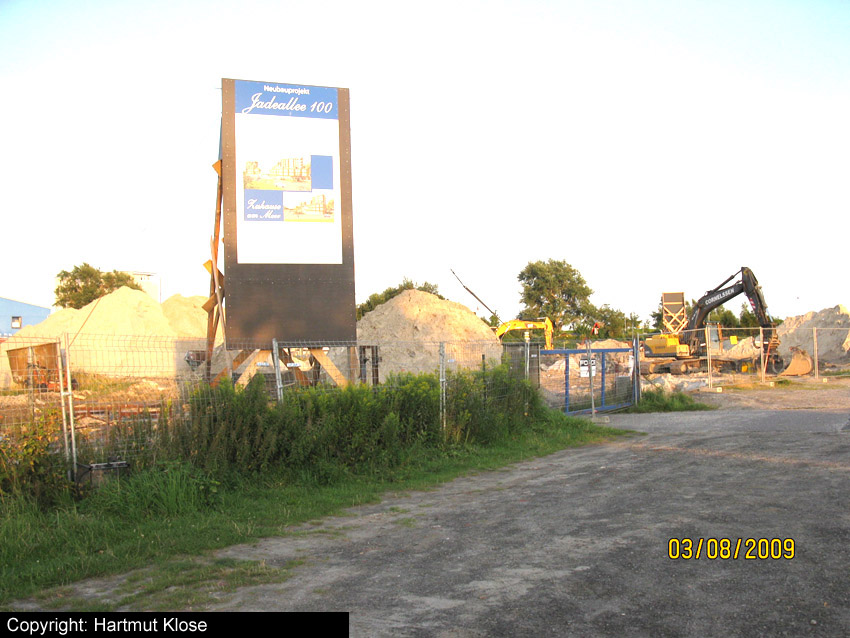 Nachtrag 31.07.09: Das Fundament ist zerkleinert und wird nächste Woche abtransportiert zur Bauschuttdeponie bei Sande. Dorthin, wo seinerzeit auch die Trümmer der abgerissenen Brandwache "Oceanis" verbracht worden sind...