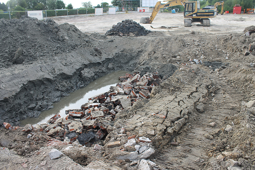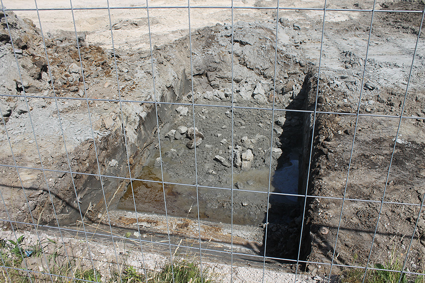 Nachtrag 01.08.18: Wieder traten die aktuell zugeschütteten Fundamente im Zusammenhang mit dem ehemaligen dortigen Öltank ans Tageslicht...