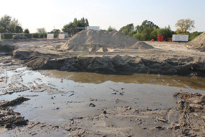 Nachtrag 08.04.11: Das mittlerweile seit geraumer Zeit brachliegende Baugrundstück gleicht mittlerweile einem idyllischen Teichgelände...
