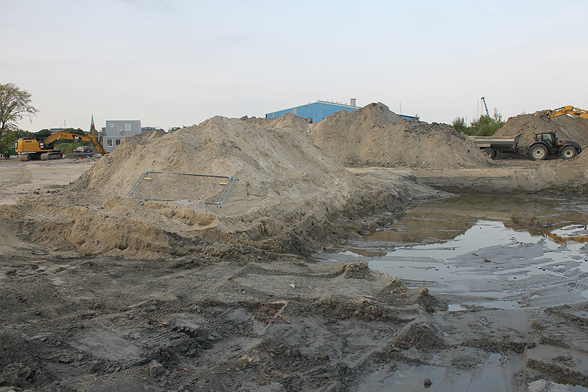 Nachtrag 04.06.15: Das Gelände wurde nicht bebaut. Ein Investor sprang ab. Das ganze Gebiet wurde wieder dichtgeschüttet und ist nun ein "Notparkplatz" (Schotterparkplatz). Hier liefen Dinge, wie sie so eigentlich nicht laufen sollten...