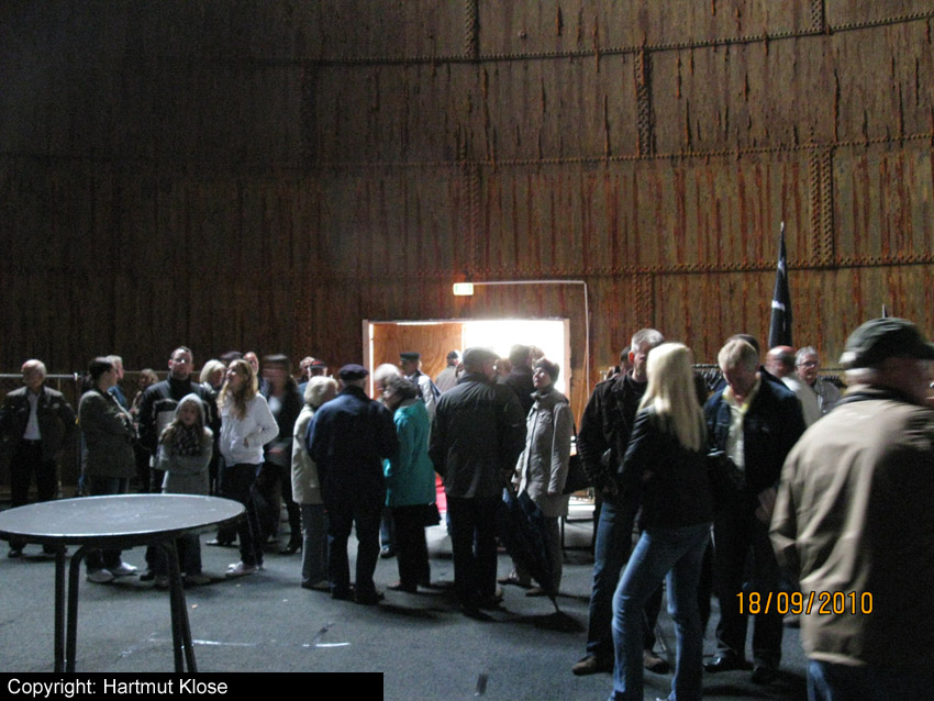 Das etwa hundertjährige, unter Denkmalschutz stehende Bauwerk stellte in der Kriegsendphase neben diversen Feuerlöschteichen, Hydranten, Zisternen, Löschwasserkellern und gesicherten, splittergeschützten Löschwassertanks anteilig die Löschwasserversorgung des umliegenden Gebietes der Stadt sicher. Der Großtank, wie auch die beiden westlich befindlichen, in der Nachkriegszeit bereits beseitigten Tanks (das geschah erst im Jahre 1997), wurden von der Kriegsmarine durch die anliegenden Marine-Wasserwerke unterhalten. Die Tanks waren jedoch nicht gegen Splitter- und Trümmerwirkung nachgerüstet worden. Dennoch haben die Objekte den Krieg relativ unversehrt überstanden. Dieser letzte Tank wird in den kommenden Wochen einem Neubau weichen müssen. Heute zwischen 15 und 18 Uhr war für die Bevölkerung die Gelegenheit, das Relikt noch einmal von innen zu sehen. Am heutigen Abend wird der Tank mit einer Diskoveranstaltung verabschiedet. Wir werden über den kommenden Abriss berichten.