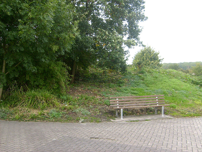 Oben: Kleine Aufschüttung südöstlich des Maschinenbunkers... Befand sich hier eine weitere Verbunkerung? Auf dem Luftbild ist allerdings nichts erkennbar in dem Bereich.