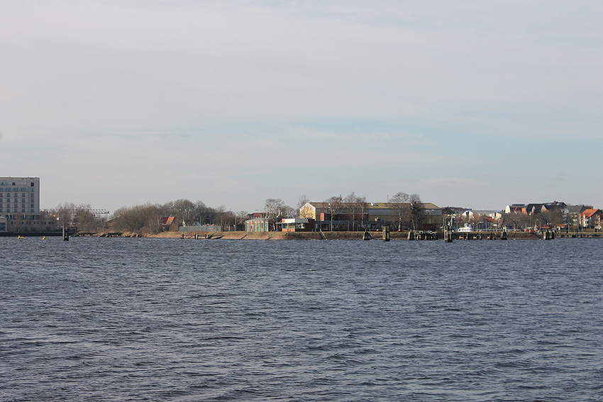 Seydlitzbrücke nördlich des Bunkers: Ursprünglich erstreckte sich die Seydlitzbrücke über den gesamten Südbereich des Hipperhafens in etwa vom West-Bereich des Südanlegers der Grodenfähre bis zum Ost-Bereich "Planschbecken". 1945 waren von den Konstruktionen der Brücke an der Kaimauer über dem Hafenwasser aber nur noch Bereiche mittig-östlich* und ganz westlich Richtung Grodenfähre vorhanden. Siehe dazu folgendes Bild mit "Monte Pascoal".