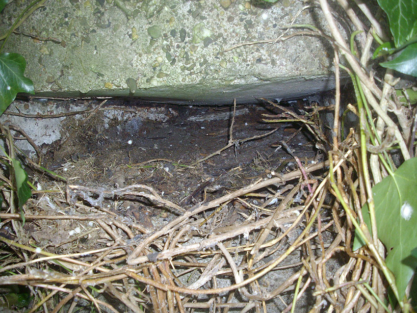 Nachtrag 09.01.18: Das Innere zeigt einen Schacht mit einer Art Schieber am Boden. Vom Fortgraben her ist ein Zufluß vorhanden, dieser ist mit Gestein, usw. verstopft. Wahrscheinlich nachträglich verstopft, um eine Verringerung des Wasserstandes des alten Fortgrabens bei Niedrigwasser der Maade / bei Schieberöffnung zu verhindern. Zur nahen Maade hin befindet sich ein Kanalrohr, im Bild am Pfeil ansatzweise zu erkennen. Hier sollte wohl der Wasserstand vom Fortgraben im Zusammenspiel mit der Maade reguliert werden. Was die Betonquader im Umfeld für einen Zweck hatten, ist allerdings weiterhin ungeklärt.