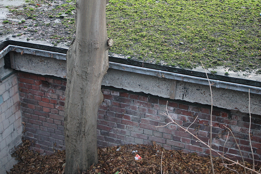 Noch heute sind an der Nordwand Bereiche aus Beton zu erkennen. An der Ostseite sieht man im Nordteil des Bauwerkes noch ein Stück des betonierten Simsbereiches.