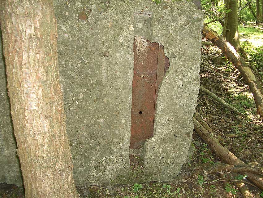 Südlich des Bunkers befindet sich eine abgelagerte (wohl umgekippte) betonierte Kammer mit Stahltür, wie sie auch am Betonsockelfundament in der Nähe zweifach vorhanden sind (siehe unter Hinweise Tabelle Seite 9). In ihnen wurde mit aller Wahrscheinlichkeit Flak-Munition gelagert. Sozusagen Mini-Munitionsbunkerboxen.