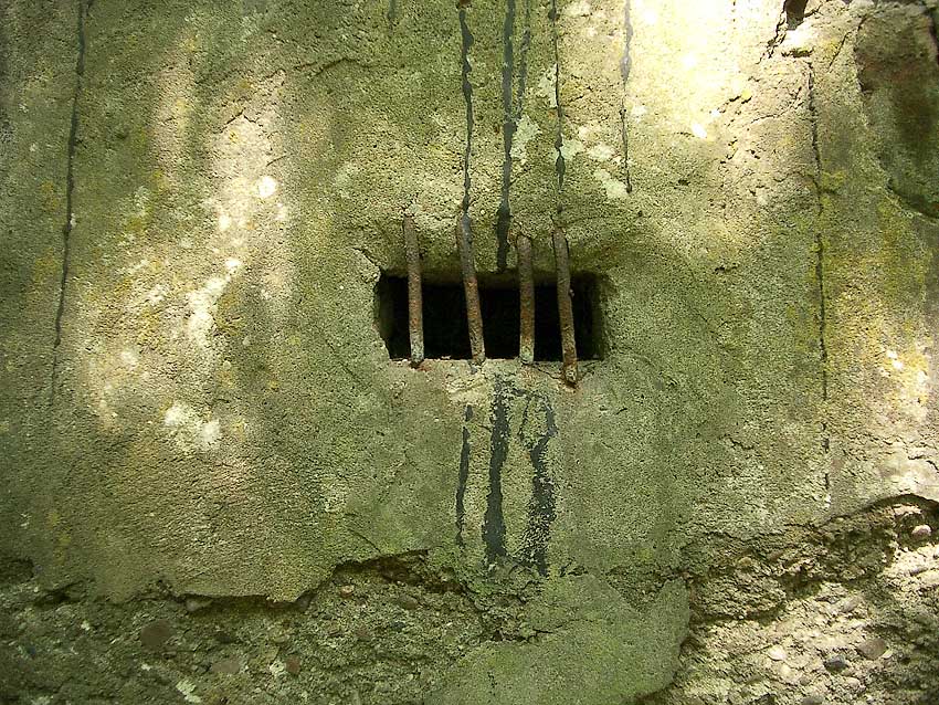 Sichtloch Süd / (nachträglich?) vergittert inmitten der Putzfläche.