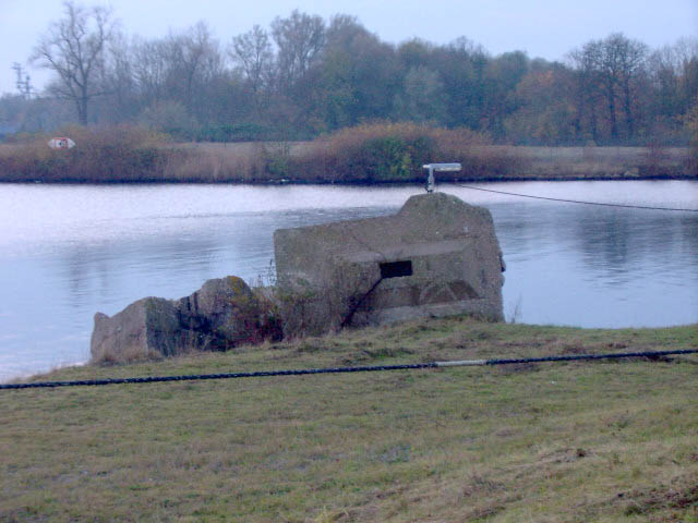 Allerdings ist kein Hohlraum zu erkennen, bzw. es ist unklar, in welcher Position das Objekt ursprünglich stand / lag. Auch relevante Abbruchbereiche aufgrund der damaligen Sprengung bezüglich eines ehemaligen Verbundes mit weiteren Teilbereichen sind hier nicht erkennbar. Ein weiterer, an der Wasserkante liegender größerer Trümmer direkt daneben dürfte aber zum Objekt gehören. Auf Luftbildern von 1945 ist leider nichts erkennbar.