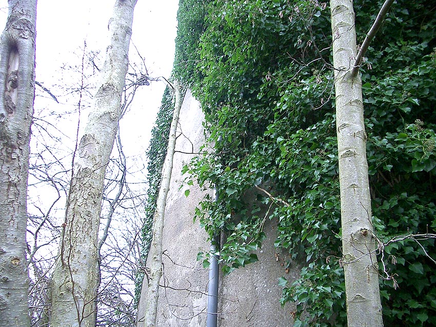 Stürme haben in den vergangenen Monaten fast sämtliches Efeu vom Turm gerissen. Auch die Konsolen am Westeingang sind mittlerweile beschädigt.