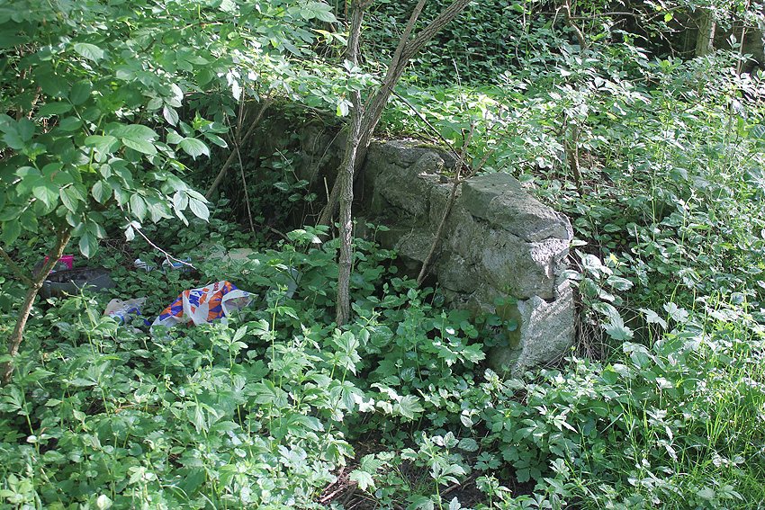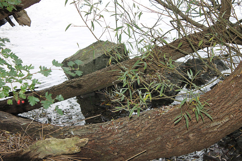 Nachtrag Herbst 2015: Eventuell ein Notausgang des Bunkers nahe südwestlich davon? Und weitere Reste am Ufer...