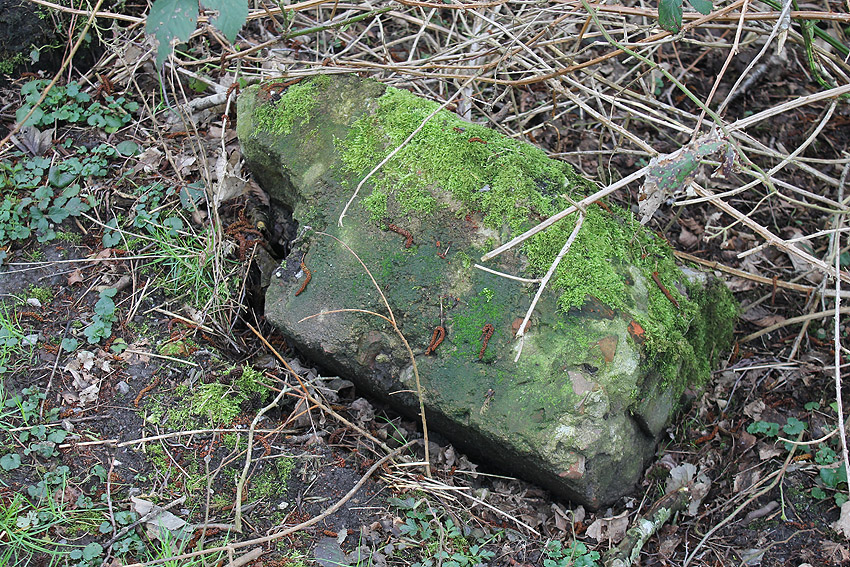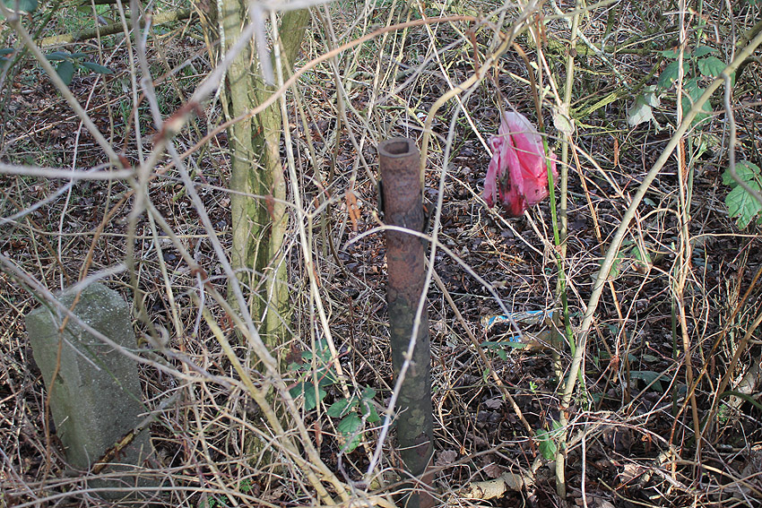 Hinweis: Solche zierenden Elemente wurden nicht selten auf Flakstellungsgeländen von den Marineangehörigen in deren "Freizeit" errichtet. Hier: Geländebegrenzung / Aufenthaltsecke (?) unmittelbar südlich / südwestlich des Südostbunkers. Teilweise wurden sogar Gemüsegärten usw. in den Flakbatterien angelegt (Beispiel: Schwere Flakstellung Hohemey)...