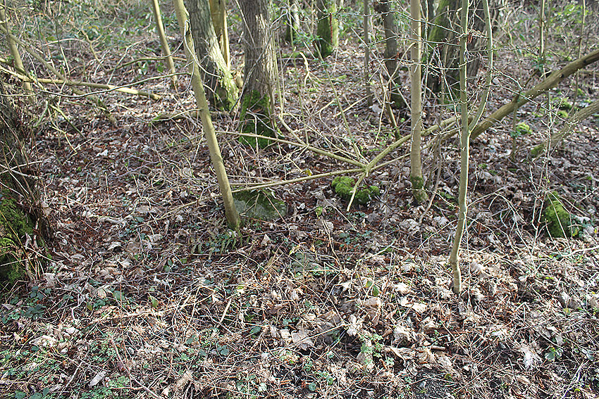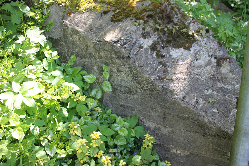 Am 4. Juni 2015 besuchten wir nochmals den überschütteten Bereich vom Geschützbunker Südwest. Was wir fanden, war nicht "Nichts", allerdings nur sehr wenig, darunter jedoch ein Treppenrest (auf den Geschützbunker?):