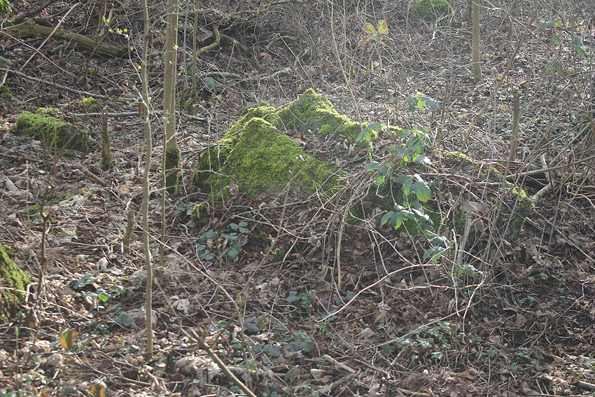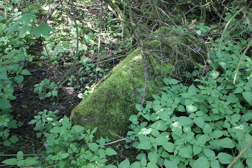Oben / Unten: Zwei Steinquader links und rechts des Weges unweit des Südostbunkers... War hier ein Schlagbaum angebracht?