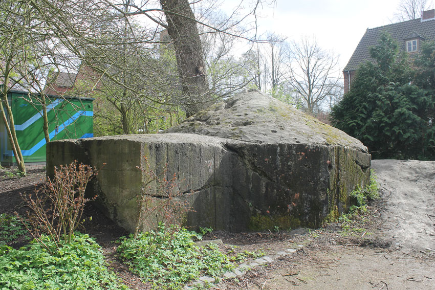 Der Beton der Kuppel wurde mit einem Spaten festgeklopft. Der Bunker ist in Eigenbau entstanden. Die Betongüte und die Schalung sind als eher dürftig zu bezeichnen. Es kam bei diesem Bauwerk nur noch auf die schnelle Schaffung eines Schutzraumes an.