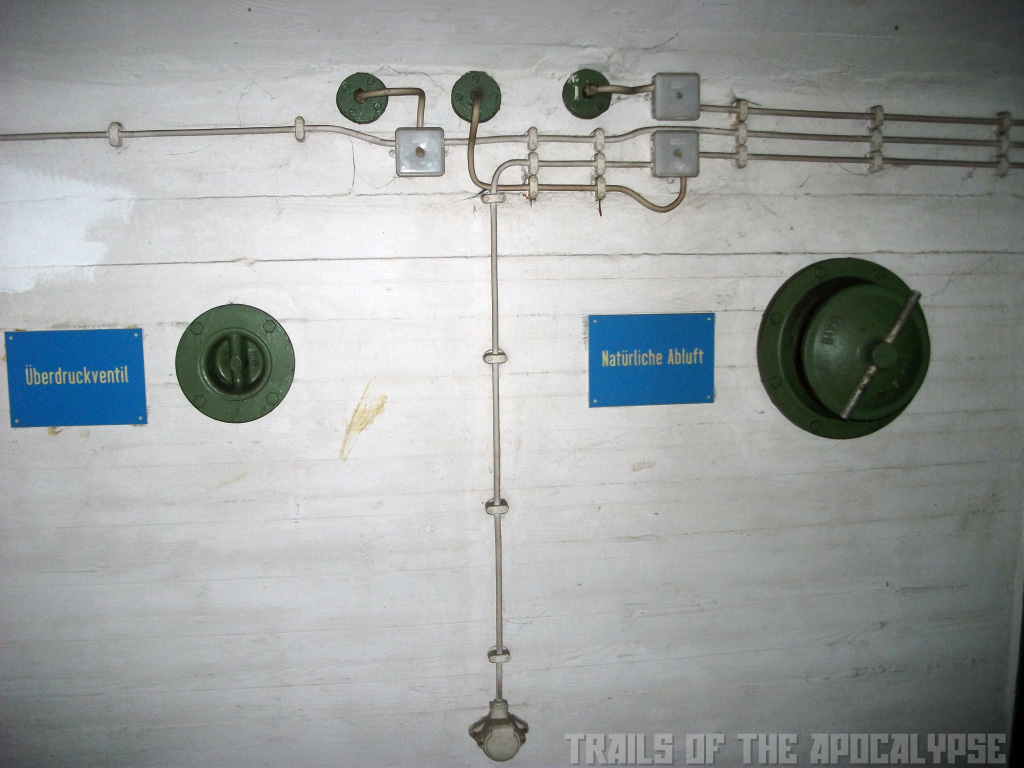 "Unter dem Gleisbett des Hauptbahnhofs nebenan und dem großen Gebäude selbst liegen weite Gänge unter der Erde, die zum einen zu Transportzwecken von der Schiene auf die Straße genutzt wurden, auf der anderen Seite aber auch Schutz im Falle einer Eskalation des kalten Krieges bieten sollten. Der Luftschutzbunker ist in 4 Räume für je ca. 25 Personen sowie einen für ca. 70 (?) unterteilt, verfügt über eine Belüftung mit ABC-Schutzfunktion und Notbetrieb per Hand. Die Räume sind untereinander durch ein kleines Tunnelnetz verbunden, dieses bietete außerdem zwei Notausstiegsmöglichkeiten. Im Teil, der für logistische Zwecke genutzt wurde, befinden sich außerdem zwei größere Schutzräume für je über 100 Personen. Heute wird die Anlage zwar noch mit Strom versorgt und jährlich geprüft, wird sonst aber nicht mehr genutzt. Die Lüftungen funktionieren auch nach über 30 Jahren noch und abgesehen von ein wenig Feuchtigkeit könnten die Räume selbst heute noch vielen Menschen Schutz bieten – zum Glück ist dies allerdings nicht nötig, daher geraten sie in Vergessenheit." Quelle: Trails of the Apokalypse.de
