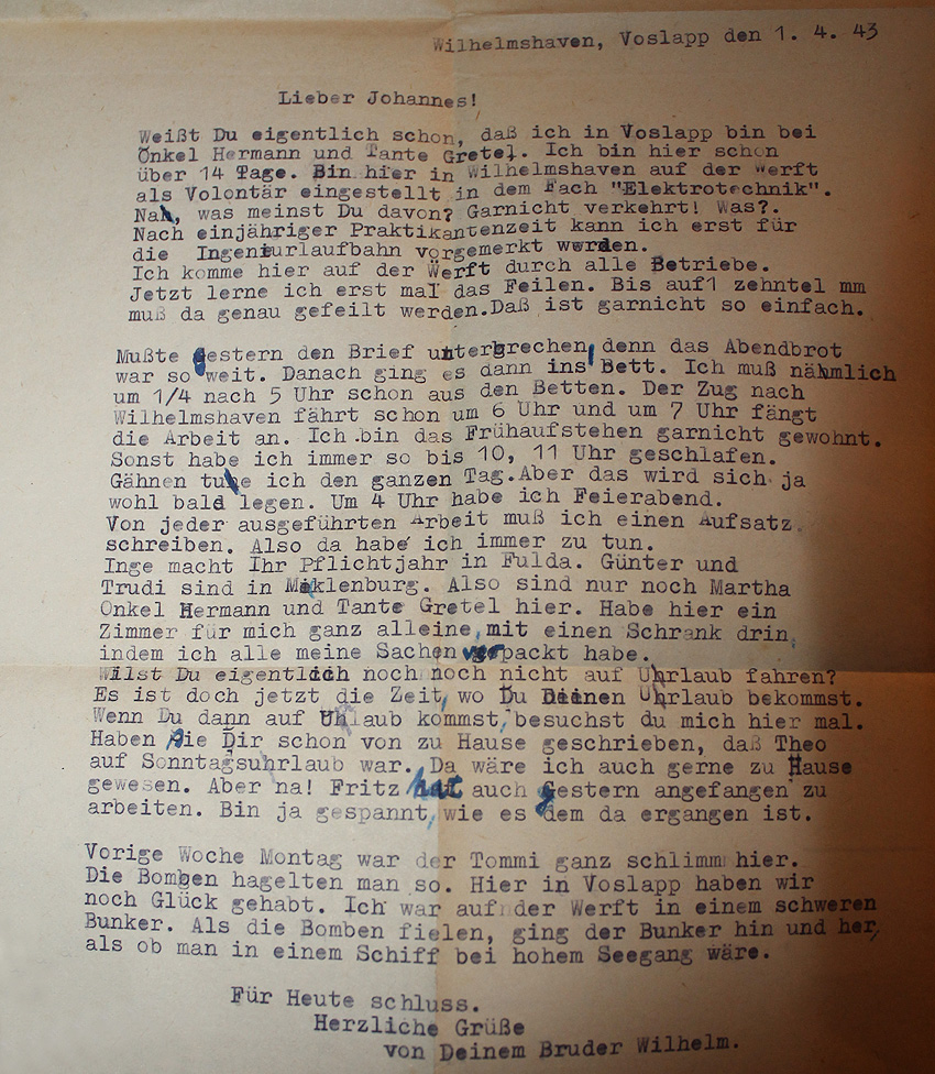 Authentisches Briefbeispiel zur Lage in der Stadt am 1. April 1943: