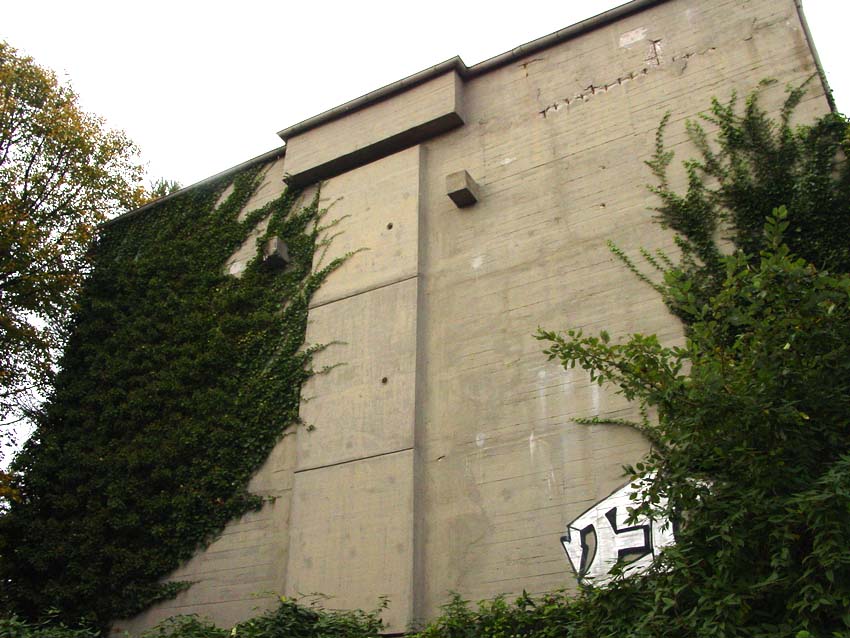Der Lüftungsturm ist bauartähnlich zum Turm des Bunkers Kronshagener Weg / Sedanstraße ("Sedan-Bunker"), nur ist er im unteren Bereich höher...