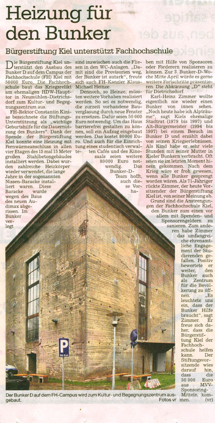 Im Verzeichnis der Bunker, Stollen und Deckungsgräben in Kiel