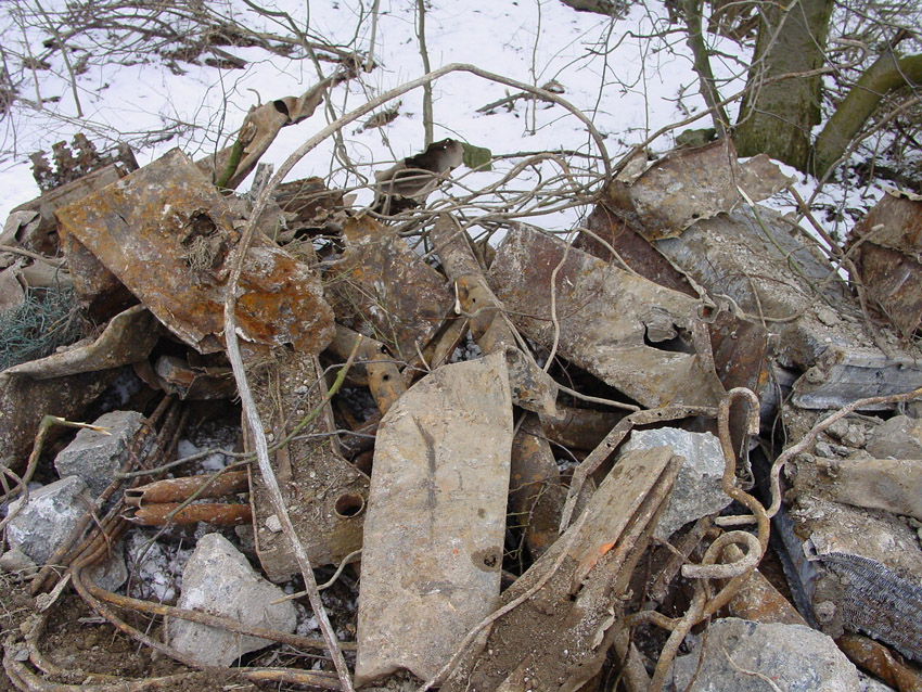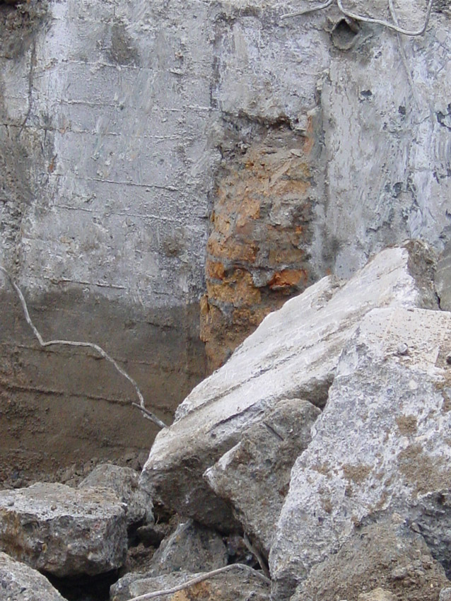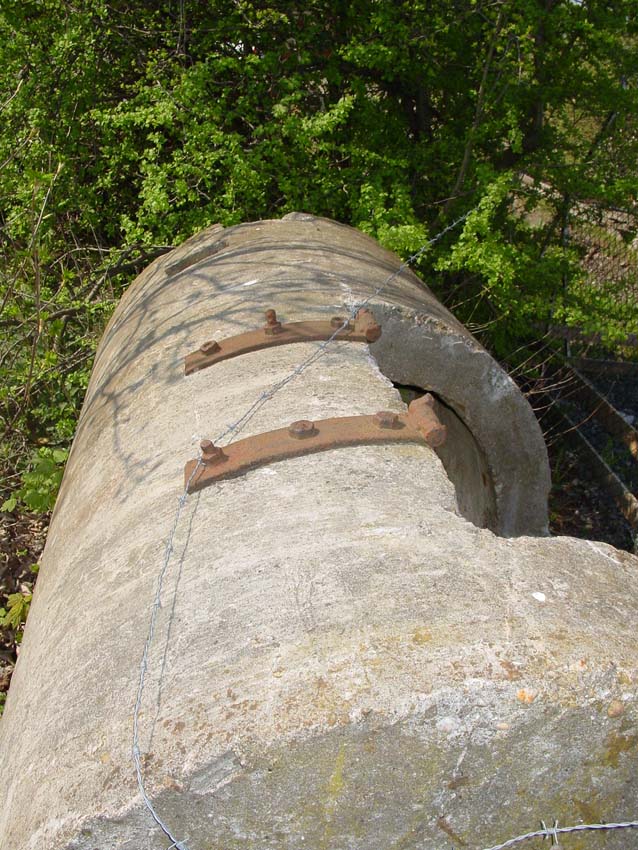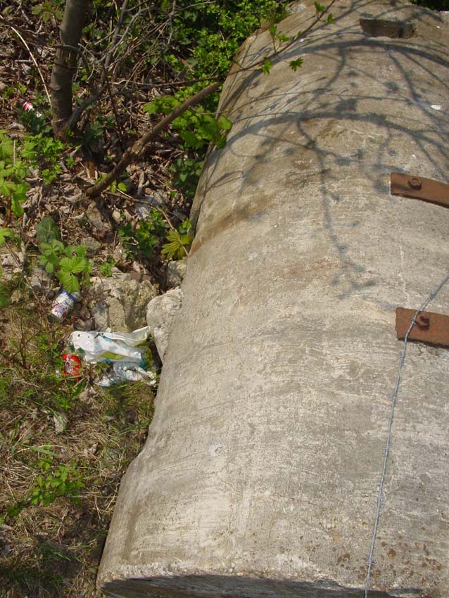Hier zu sehen eine weitere Zelle der Bauart "DYWIDAG", teilzerstört und umgekippt. Sie befindet sich an der Kaistraße / Schwedendamm an den Gleisen: