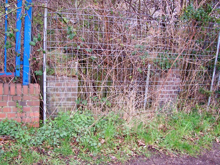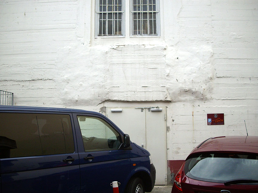 Ein weiterer Eingang befindet sich ebenfalls an der Straße, dieser ist schon direkt an der äußeren Kante vermauert worden:
