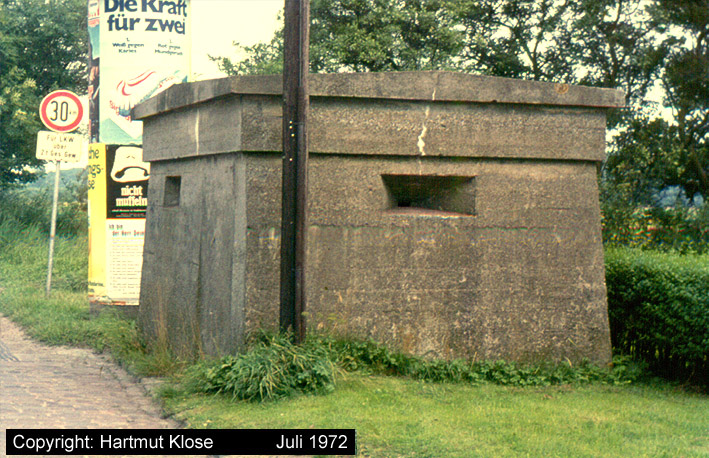 Aufnahmen des Kleinbunkers am Lönsweg. Dieser Bunker war für das Rundsuchgerät "Jagdschloß" als Sockel geplant. Das Gerät wurde allerdings nie installiert. Im April 2003 wurde der nach dem Krieg gesprengte Bunker aus (fragwürdigen) Sicherheitsgründen zerkleinert und mit Erdreich überdeckt. Aufnahmen aus den Jahren 1968 und 2000.