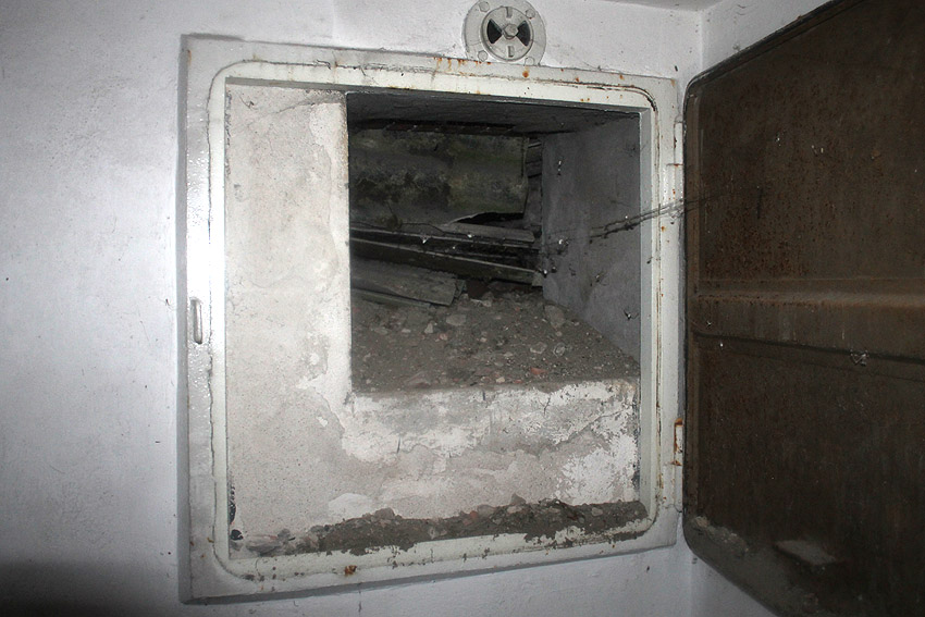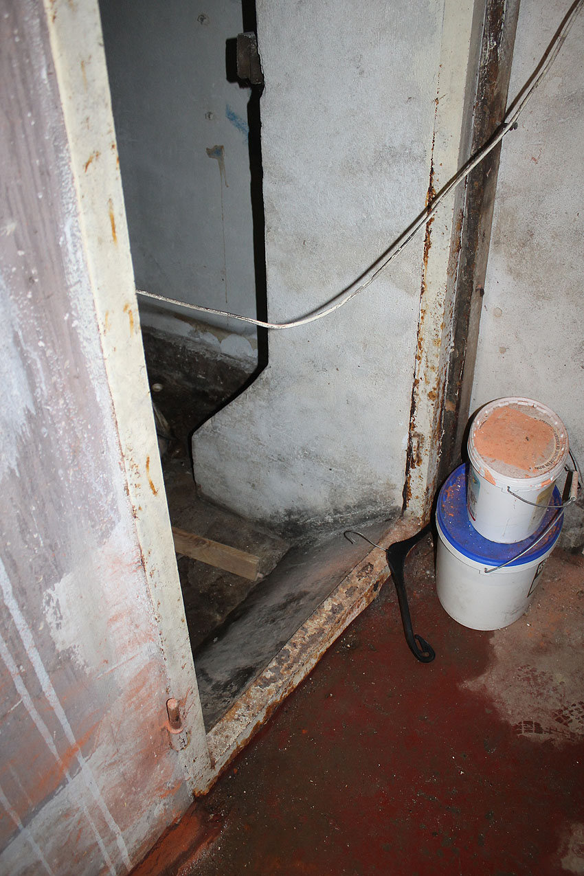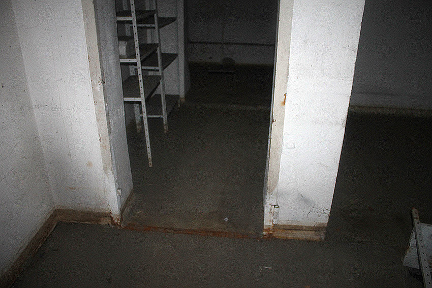 Hier war die Nordgasschleuse. Nachträglich wurde sie aufgebrochen (Öffnung links) - um einen größeren Raum für die ansässige Firma zu schaffen: