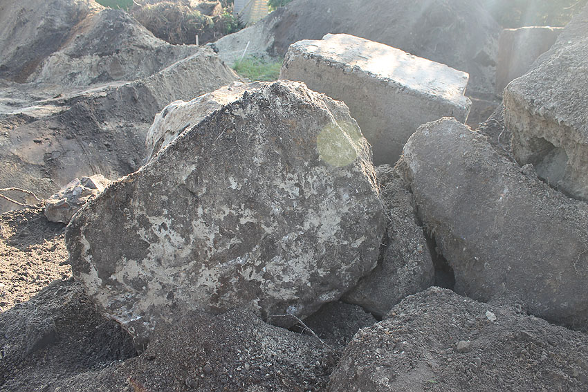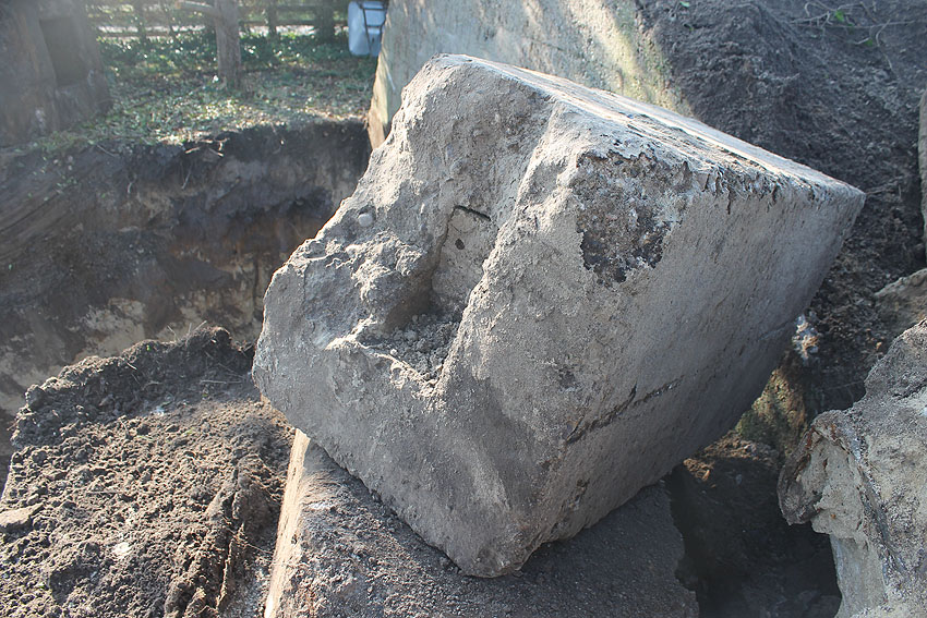 - Die Elemente müssen irgendwann in den 1980er Jahren neben das Bauwerk unter die Erde verbracht worden sein. Die beiden kleineren Trümmerstücke könnten Fragmente des Oberteiles vom Notausstiegsturm darstellen.