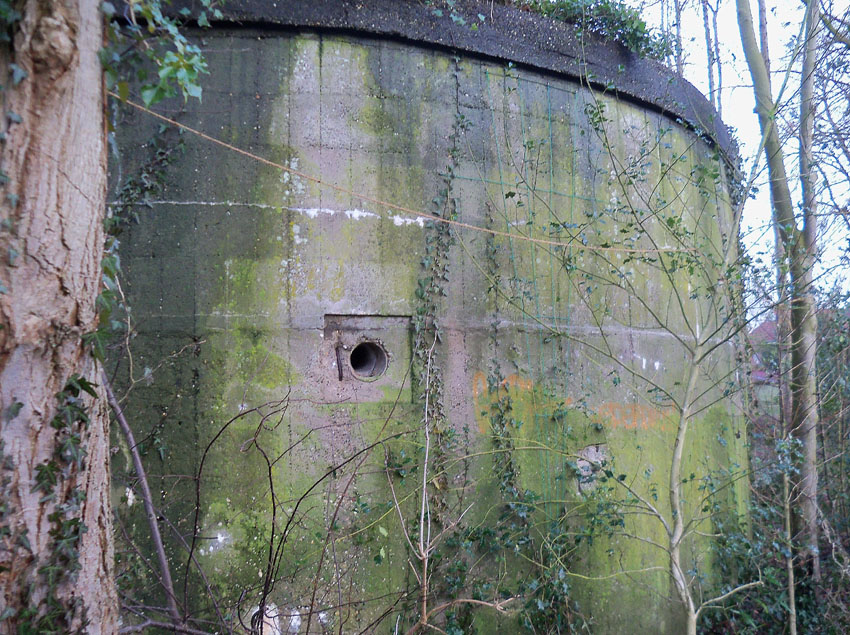 Vierter Rundbunker mit Splitterschutzvorbau / wohl bombensicher (zugemauert). Bunker steht an der Robert-Koch-Straße / bauartgleich zu den anderen drei Rundbunkern.