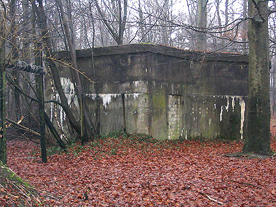 Der Brandwachenstand im Splitterschutzvorbau (drei Sichtscharten) mit Blickrichtung Nordwest zum ehemaligen Waldkrankenhausgebäudebereich (Baracken)...