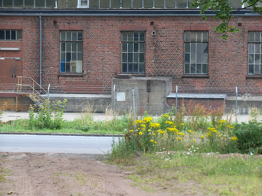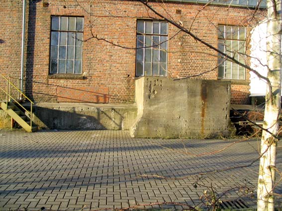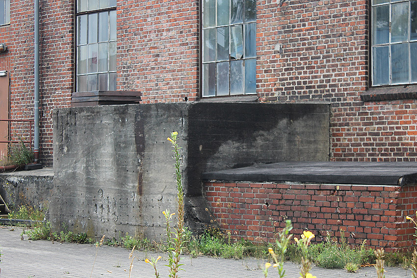 An der Ostwand des Gebäudes befindet sich zudem ein kleiner gemauerter Vorbau, der eine sichtbare Betondecke mit circa 20 Zentimetern Stärke besitzt. Eventuell gehört der Vorbau mit zur Anlage. Teilweise befinden sich zur Straße hin gelagerte Gegenstände davor (Kantsteine usw.), sodass der kleine Vorbau nicht immer zu erkennen ist.