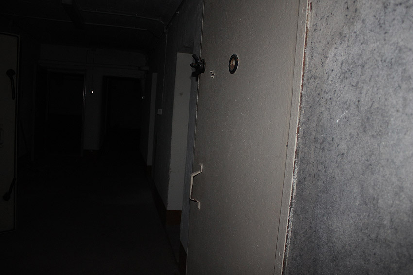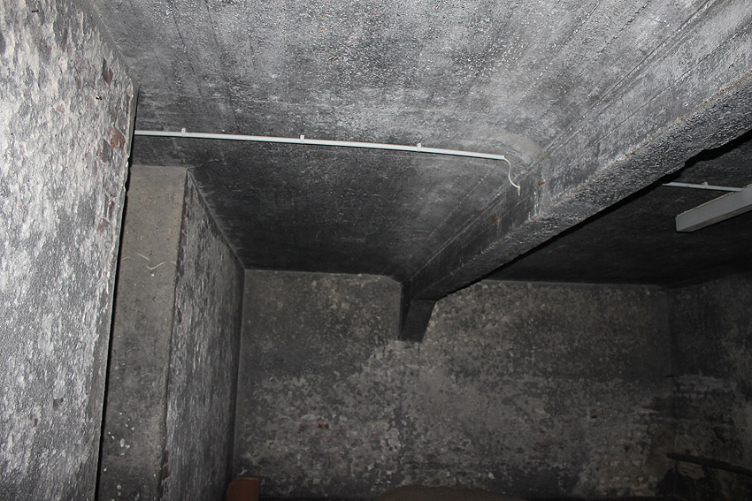 Das Innere, heute genutzt als Heizungskeller, zeigt im Bereich des ehemaligen LS-Kellers noch viele diesbezügliche Merkmale auf, insbesondere fast sämtliche Türen sind noch existent.