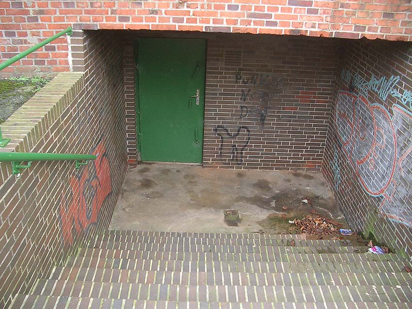 Zwei Verbunkerungen, eventuell versiegelte Notausstiege im Südostbereich des Komplexes. Hier befindet sich jedoch lediglich folgend beschriebene Versorgungssystemverbunkerung...