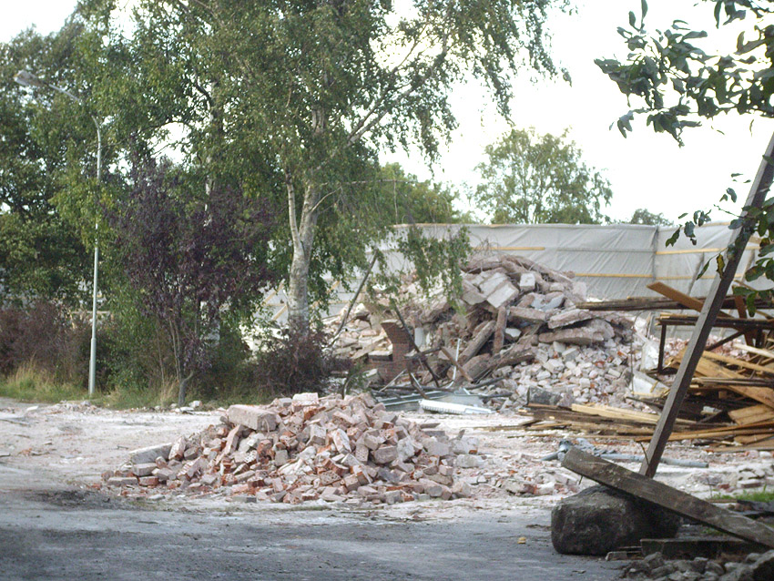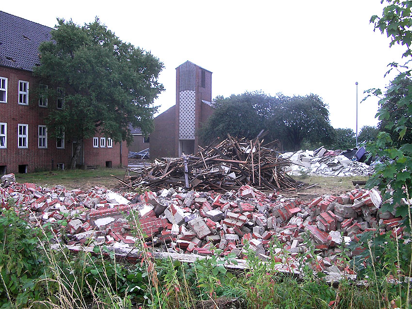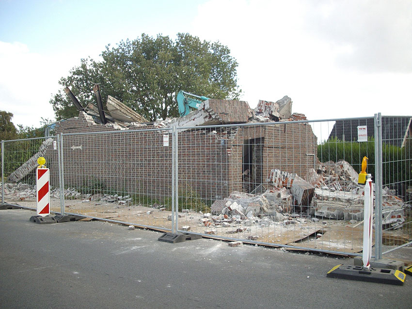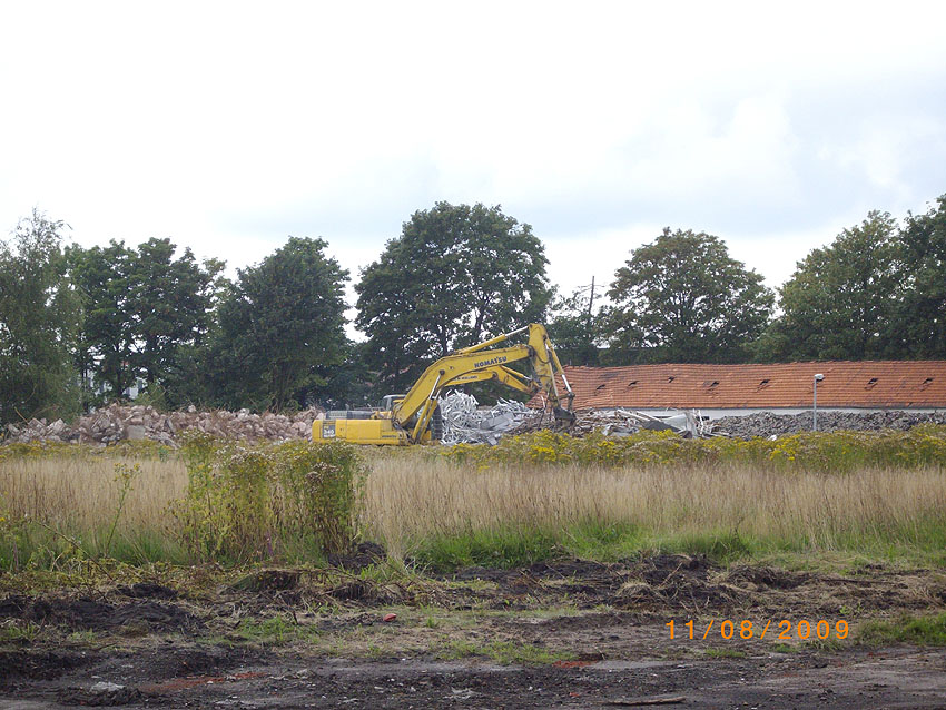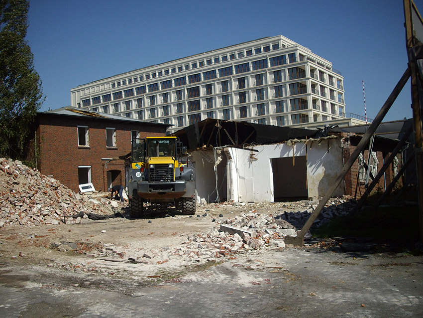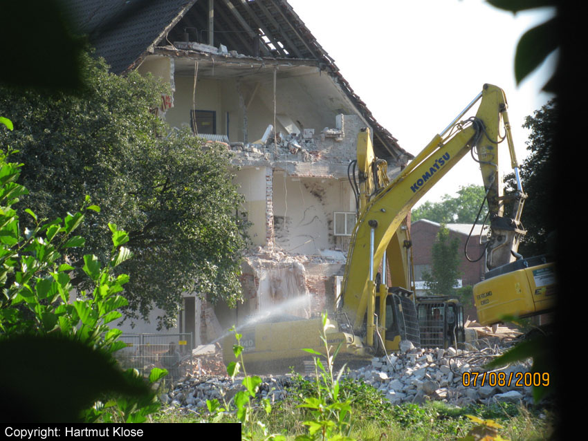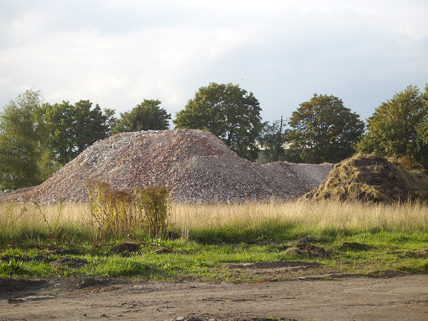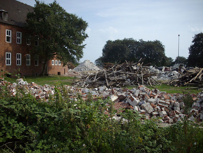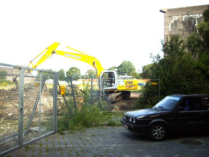 Banter Kaserne: Der Schutt wurde weiter sortiert und der Schuttberg ist bis auf 8 Meter Höhe gewachsen. Die Fundamente der Hauptgebäude wurden entfernt. Hier Wie nun bekannt wurde, sollen das Stellwerk und das Trafogebäude an der Emsstraße am Montag, 21.09.09, abgerissen werden. Zumindest das Trafohaus war der Banter Kaserne als Stromversorgungsverteiler zugehörig. Beide Gebäude befinden sich extern des Kasernengeländes an der Emsstraße. Letzte Impressionen: Hier Wir berichten Montag zeitnah.