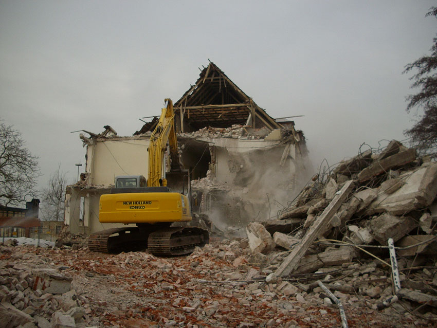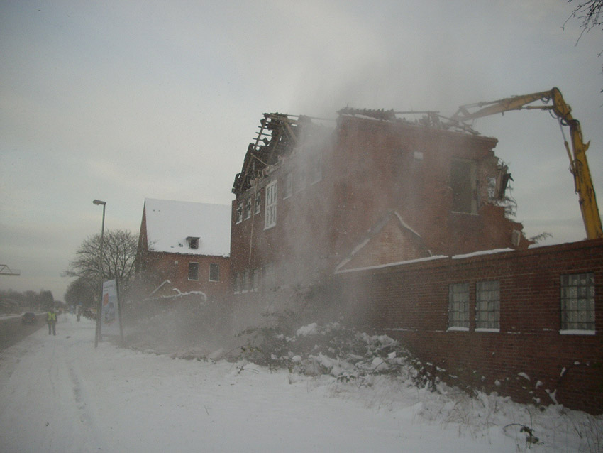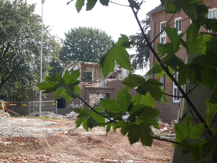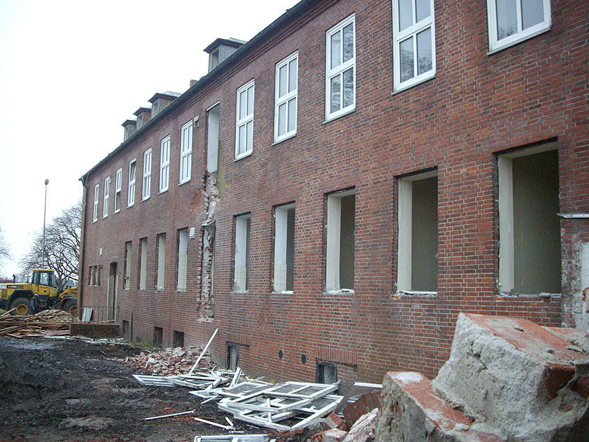 Banter Kaserne: Der Abriss des westlichsten Hauptgebäudes begann am vergangenen Montag (14.12.09). Das Gebäude ist nun bereits zu zwei Dritteln entfernt: Hier