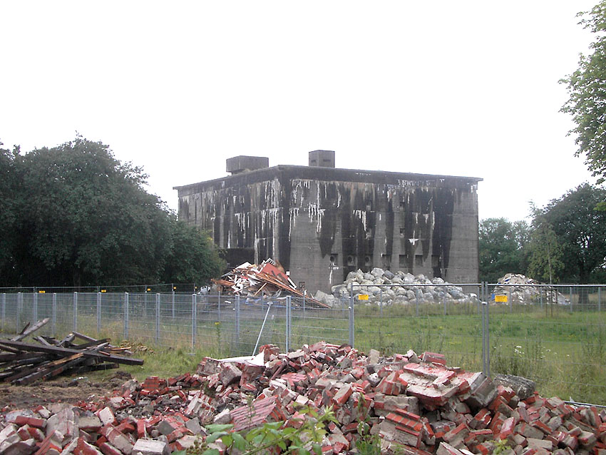 Banter Kaserne: Das Stellwerk an der Emsstraße ist abgerissen. Nun wird höchstwahrscheinlich eine längere Ruhephase eintreten. Eine neue Ausschreibung für den zweiten Rückbauabschnitt der Kaserne wird herausgegeben werden. Wir berichten weiter über die Abräumung vom Schutt des ersten Abschnittes und über alle Neuigkeiten bezüglich Abschnitt 2. Hier Hinweis: Das Stellwerk stand in keinem direkten Zusammenhang mit der Banter Kaserne / U-Boot-Stützpunkt. Lediglich das Trafogebäude stand in Verbindung mit der Marineanlage Bant. Der Abriss des Stellwerkes wurde in den Gesamtbericht mit aufgenommen, da er im Zuge des Kasernenabrisses erfolgte.
