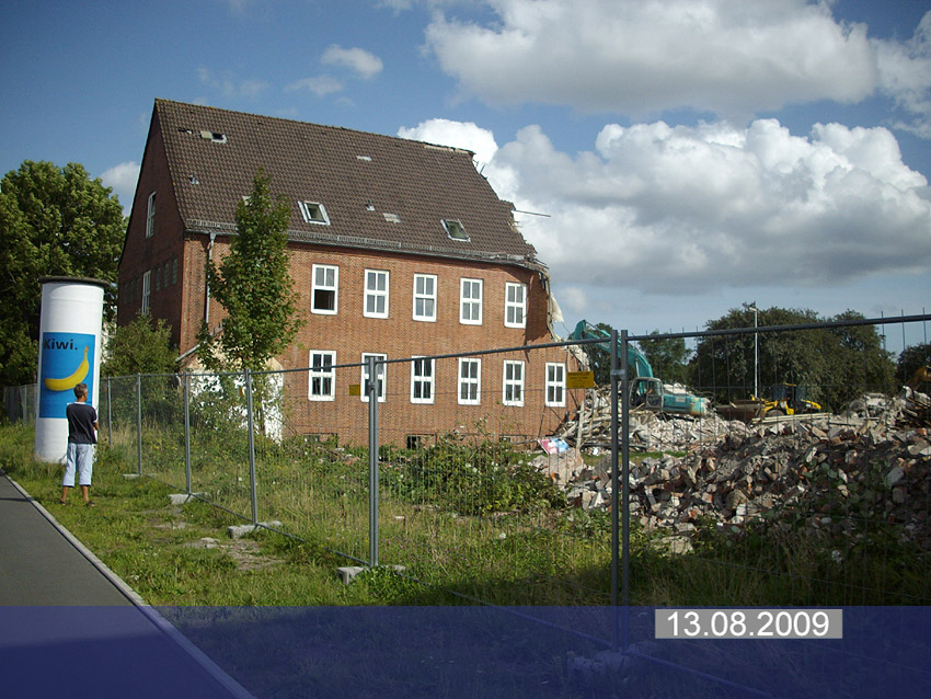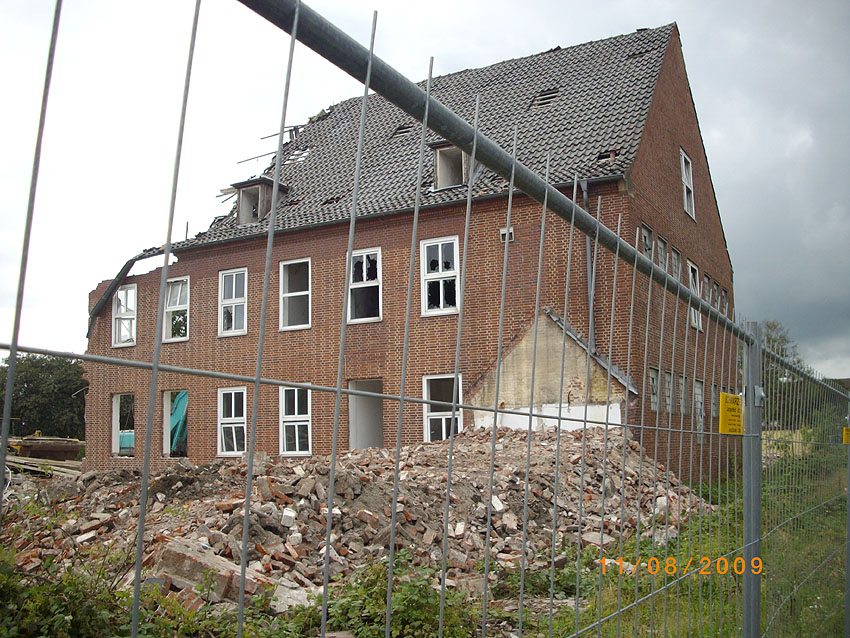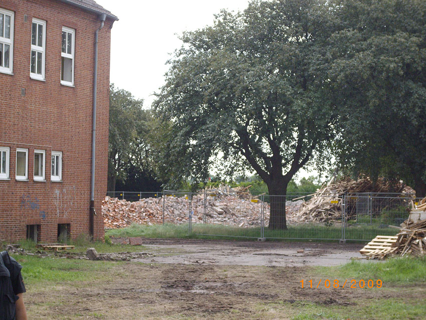 Banter Kaserne: Der Abriss des westlichsten Hauptgebäudes ist vollendet. Der Abriss des ursprünglich westlichsten Hauptgebäudes wurde eingeleitet, das Gebäude ist bis zum 23.12.09 zu zwei Dritteln entfernt worden. Sämtliche Verbindungsgebäude sind komplett abgerissen. Aufnahmen vom 22.12.09, 23.12.09 und 26.12.09: Hier