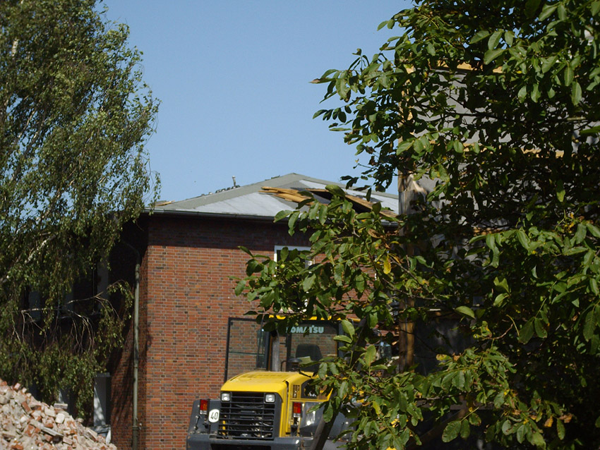 Banter Kaserne: Die Entkernung der beiden letzten Hauptgebäude läuft, die kleinen Verbindungsgebäude zwischen den Hauptgebäuden werden weiter abgerissen. Hier