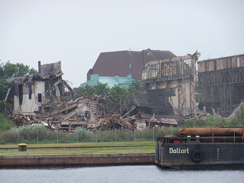 Kleinbunker westlich Deichstraße (ehemals HBV): Seit dem 16. des Monats wird nun der Kleinbunker innerhalb weniger Tage mit einem Hydraulikmeißel abgerissen. Zusammen mit dem Bunker werden auch die ehemaligen historischen Hallen und Gebäude von HBV abgebrochen, diese bis November. Hier sollen unter anderem diverse Garagen errichtet werden. Eine Planung des Abrisses war schon länger bekannt. Während des Abbruches trat die äußerst massive Bauweise des in Wilhelmshaven einzigartigen, pyramidenförmigen kleinen Bunkers noch einmal zum Vorschein. Stahlträger im Beton erhöhten die Festigkeit. Der Bunker war teilweise unter Erdgleiche angelegt worden.