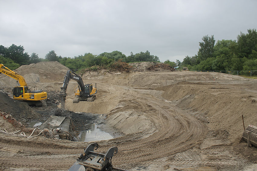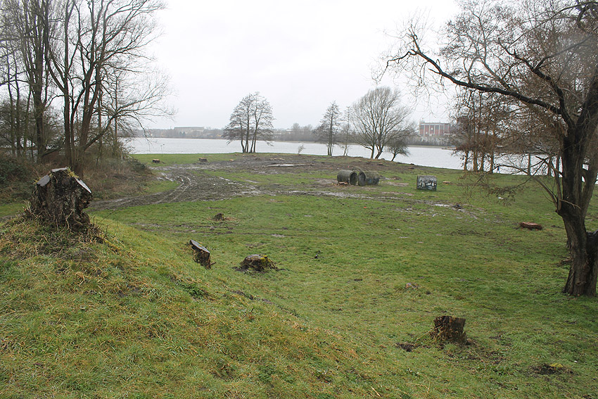 Rodungsarbeiten am Banter See / Klein Wangerooge: Der Bereich des alten Tanks Süd / Mitte ist inzwischen komplett freigelegt. Die Vertiefung des Tanks ist gut erkennbar. Hier Wir berichten weiter.