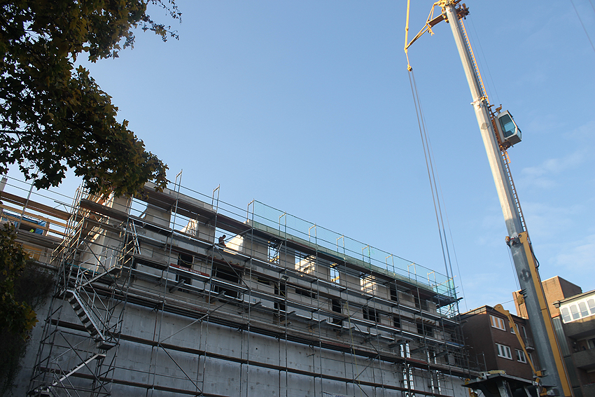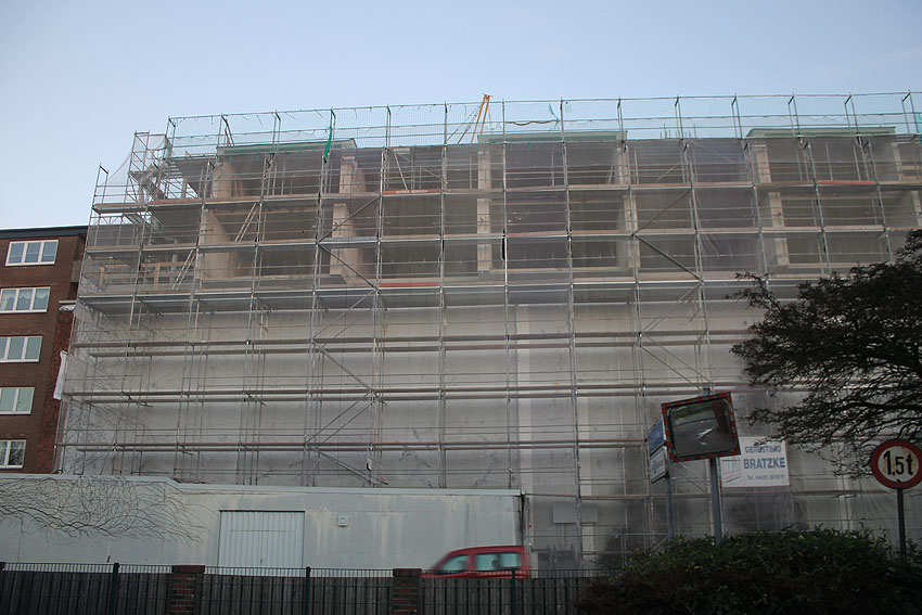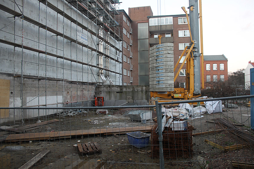 Virchowstraße / ehemaliger OP-Bunker / aktueller Überbau - letzter Bericht für dieses Jahr: Einen Tag vor Heiligabend 2015 sieht der Fortschritt auf der Bunkerbaustelle so aus... Hier