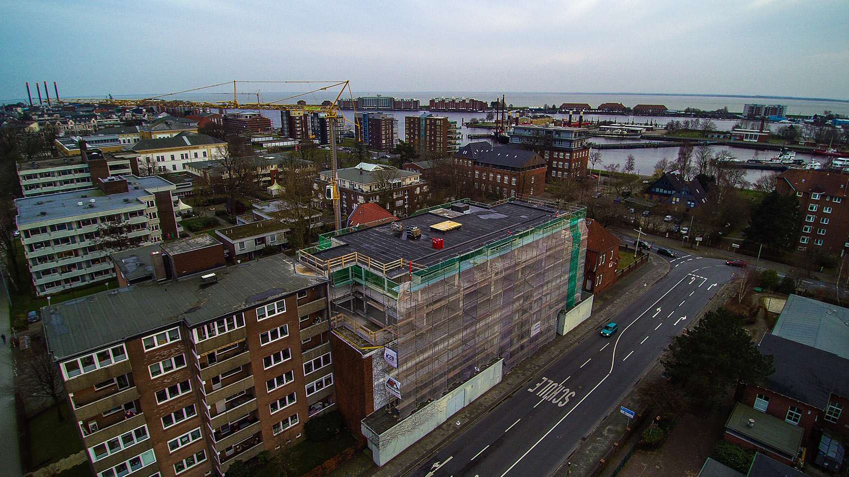Tiefbunker Wiesbadenbrücke: Keinerlei Abrissaktivität. Nach Hinweisen soll ein Abriss zu aufwendig sein, unter anderem, da der Bereich sonst mit Spundwänden gegen den Wasserdruck des Hafens gesichert werden müsste. Wir bleiben dran... Hier Rundbunker Marienstraße / ehemalige Druckerei Wallner: Nach Hinweisen soll das Gebäude bereits dieses Jahr abgerissen werden. Der Bunker eventuell auch. Wir bleiben dran. Hier So sieht es mittlerweile am Deckungsgraben der ehemaligen Schule Neuende aus. Von der Anlage ist zumindest von der Straße aus nicht mehr allzu viel zu sehen. Das im Bau befindliche Bankgebäude - in Front des Grabens und direkt vor das alte Schulgebäude gesetzt - dominiert nun den Blick... Hier