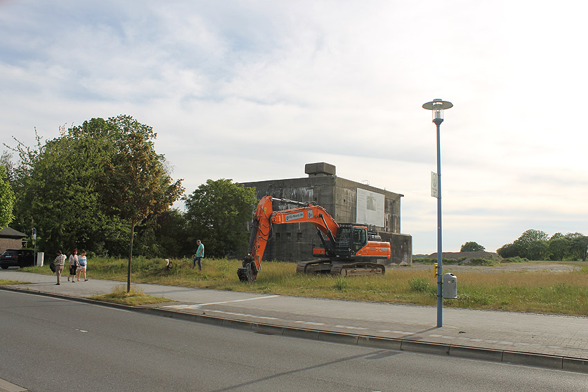 Bunker Banter Ruine. Die Zerstörung der Deckenverstärkung samt Wasserspeier (einer ist bereits beim Aufprall auf den Boden vernichtet worden) und Lüftungsturm (komplett zerstört) hat am 16. Juni begonnen. 18. Juni 2020: Heute erschien in der Wilhelmshavener Zeitung ein Artikel bezüglich der am 16. Juni begonnenen Abrissarbeiten am T 750 Banter Ruine. Wir berichten zeitnah über die weitere Entwicklung und fügen die ausführliche Fotodokumentation zügig hinzu! Weitere Informationen in Kürze.