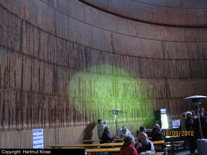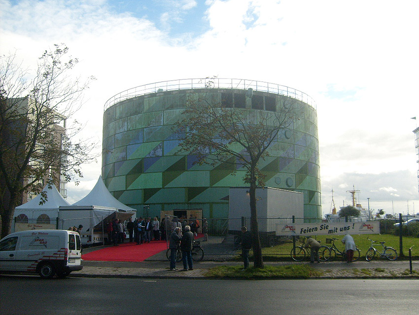 Das etwa hundertjährige, unter Denkmalschutz stehende Bauwerk stellte in der Kriegsendphase neben diversen Feuerlöschteichen, Hydranten, Zisternen, Löschwasserkellern und gesicherten, splittergeschützten Löschwassertanks anteilig die Löschwasserversorgung des umliegenden Gebietes der Stadt sicher. Der Großtank, wie auch die beiden westlich befindlichen, in der Nachkriegszeit bereits beseitigten Tanks (das geschah erst im Jahre 1997), wurden von der Kriegsmarine durch die anliegenden Marine-Wasserwerke unterhalten. Die Tanks waren jedoch nicht gegen Splitter- und Trümmerwirkung nachgerüstet worden. Dennoch haben die Objekte den Krieg relativ unversehrt überstanden. Dieser letzte Tank wird in den kommenden Wochen einem Neubau weichen müssen. Heute zwischen 15 und 18 Uhr war für die Bevölkerung die Gelegenheit, das Relikt noch einmal von innen zu sehen. Am heutigen Abend wird der Tank mit einer Diskoveranstaltung verabschiedet. Wir werden über den kommenden Abriss berichten.
