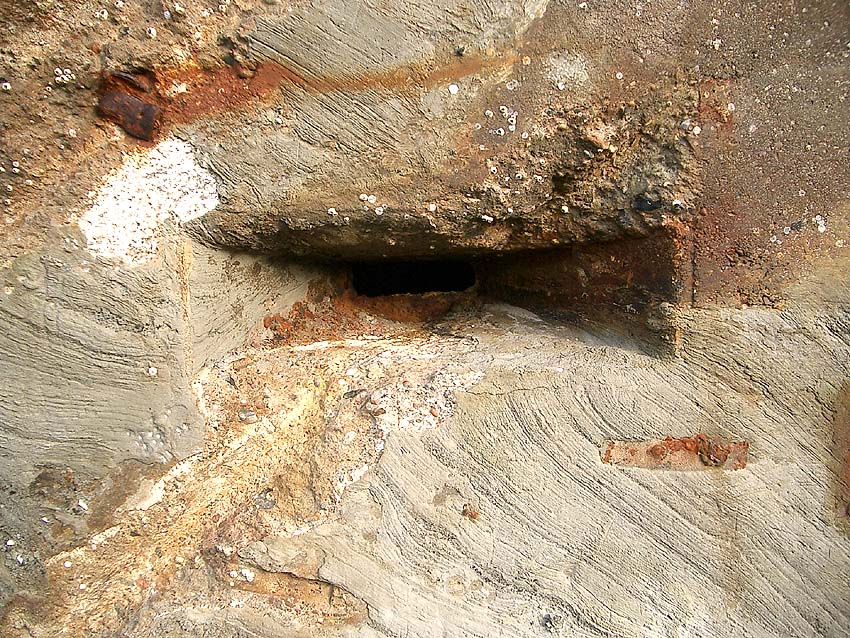 Aufnahme vom 11.8.1944: Der Originalstandort am Kai. Der Unterstand steht 45 Grad schräg zum Ufer (nur circa 5 Meter von der Kaimauer entfernt), um in ihm den gesamten Hafenbereich optimal einsehen zu können...