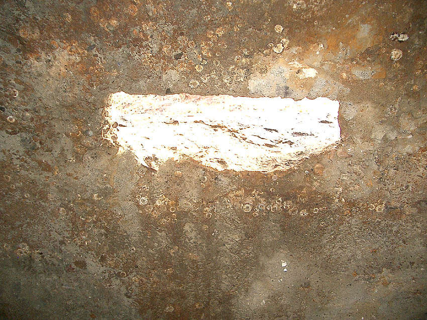 Zwischen dem 23.06.07 und dem 09.07.07 wurde die Tür verändert. Durch ihre Verblendung, sowie durch die Anbringung zweier Türriegel soll sie nun der vermuteten Originalerscheinung näher kommen:
