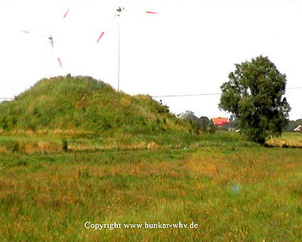 Über Größe und Art des Bunkers im Hügel kann bislang nichts gesagt werden. Es kann sein, dass das Objekt etwas mit der Flakverteidigung zu tun hatte. Ob es nach dem Krieg in dieser Form überschüttet wurde, kann nicht bestätigt werden. Uns wurde die Existenz eines Bunkers in diesem Hügel von drei Quellen bestätigt. Keinesfalls jedoch ist der Hügel ein Aushubrest der nahen Windkrafträder (Fundamente).