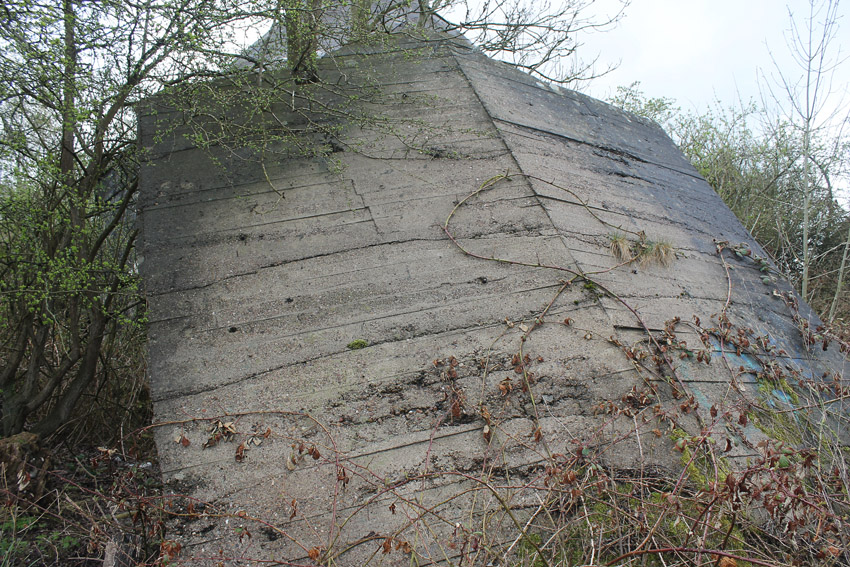 Dieser Turm besaß keine Sichtscharten in der obersten Ebene. Hier zu sehen sind lediglich Lüftungsschächte. Beobachtungsstände mit Sichtscharten waren immer Schwachpunkte im Falle eines Treffers. Da der unmittelbar neben diesem gelegene andere Luftschutzturm über vier große Sichtscharten für einen Rundumblick verfügte, waren diese hier überflüssig und nicht notwendig.